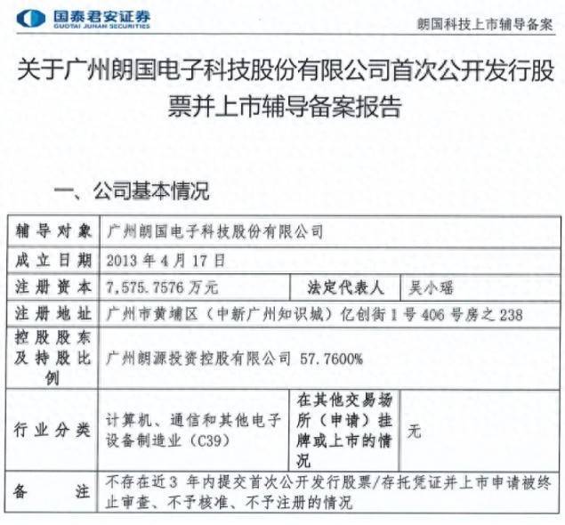 2023年11月14日,朗国科技在广东证监局进行上市辅导备案登记;同年11月27日,辅导完成,但公司目前仍未上市。