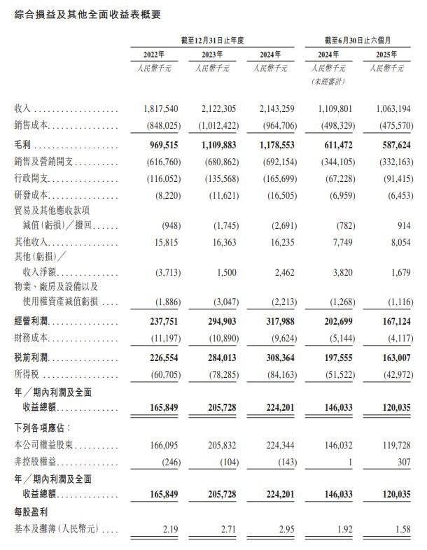八马茶业利润及全面收入总额由截至2022年12月31日止年度的人民币1.66亿元增长至截至2023年12月31日止年度的人民币2.06亿元,再增长至截至2024年12月31日止年度的人民币2.24亿元。